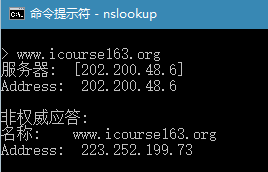 nslookup命令,测试本机DNS服务器配置及解析配置是否正确。命令格式为nslookup,回车输入网址,回车。